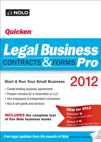 Start and run your small business, easily and efficiently, with this complete software package. You don't need an attorney for this - most of the legal work involved requires reliable information and the right legal forms. With Quicken Legal Business Pro 2012, you'll get everything you need to get the job done. Just follow the guided onscreen interviews and easily create customized documents that let you:
